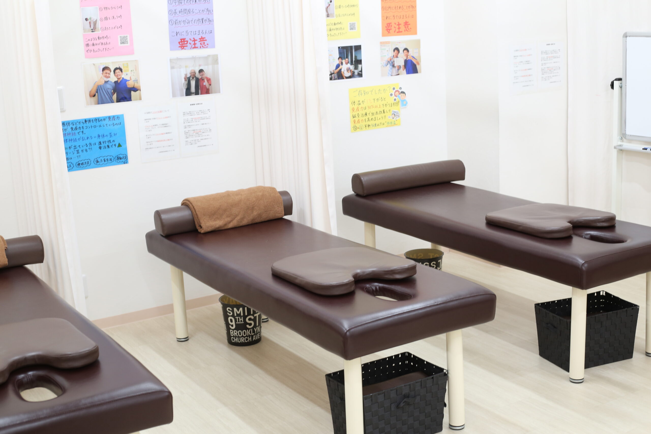 キッズスペース完備、ベビーカーのまま施術室へお入りいただけます。子育て中で忙しいママ・パパも、気兼ねなくご自身の身体のケアに集中できる環境です。