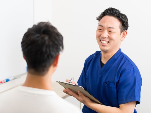 ご記入いただいた問診票をもとに、担当の施術者が詳しくお話をお伺いします。症状や痛み、お悩みのことはもちろん、普段の生活習慣などもお聞かせください。