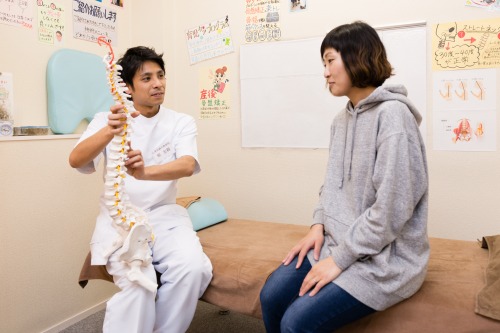 ご記入いただいた問診票をもとに、担当の施術者が詳しくお話をお伺いします。症状や痛み、お悩みのことはもちろん、普段の生活習慣などもお聞かせください。